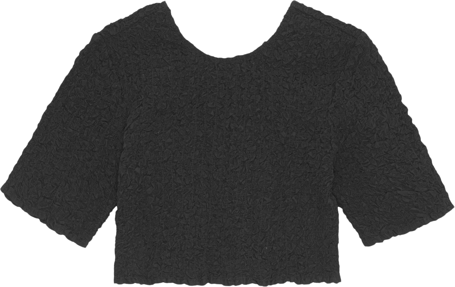 Black Cotton Poplin Oneck Cropped Smock Top