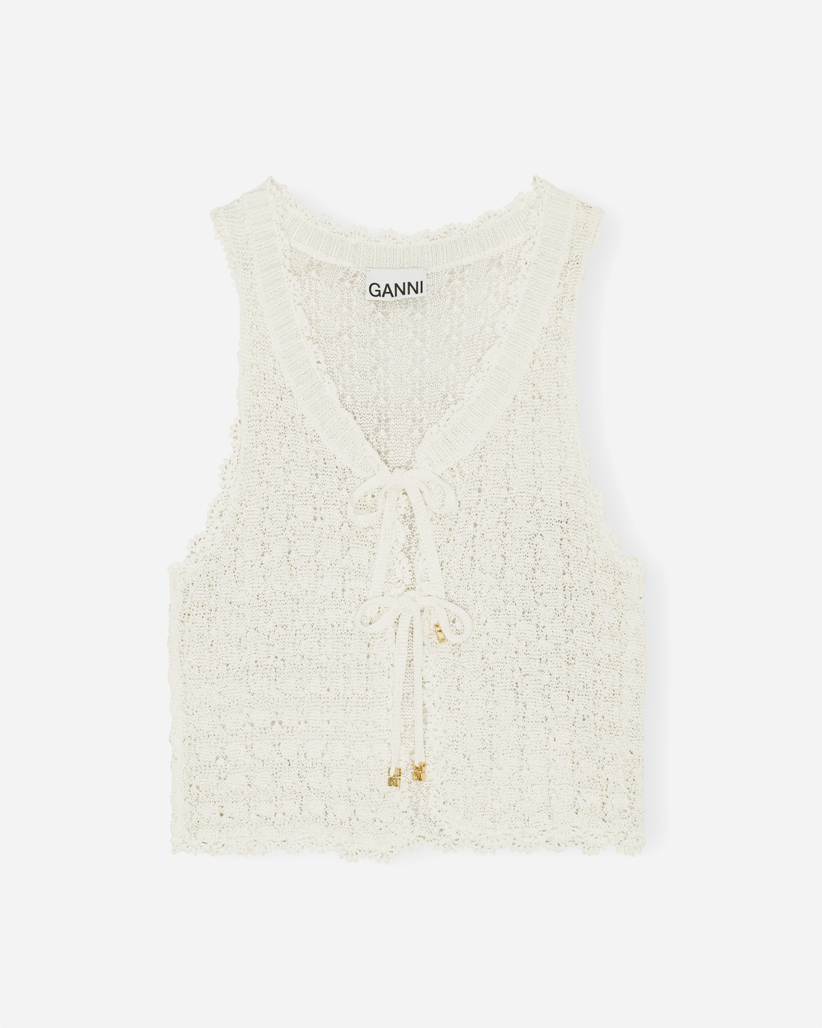 Shiny Pointelle Knit Vest – Egret