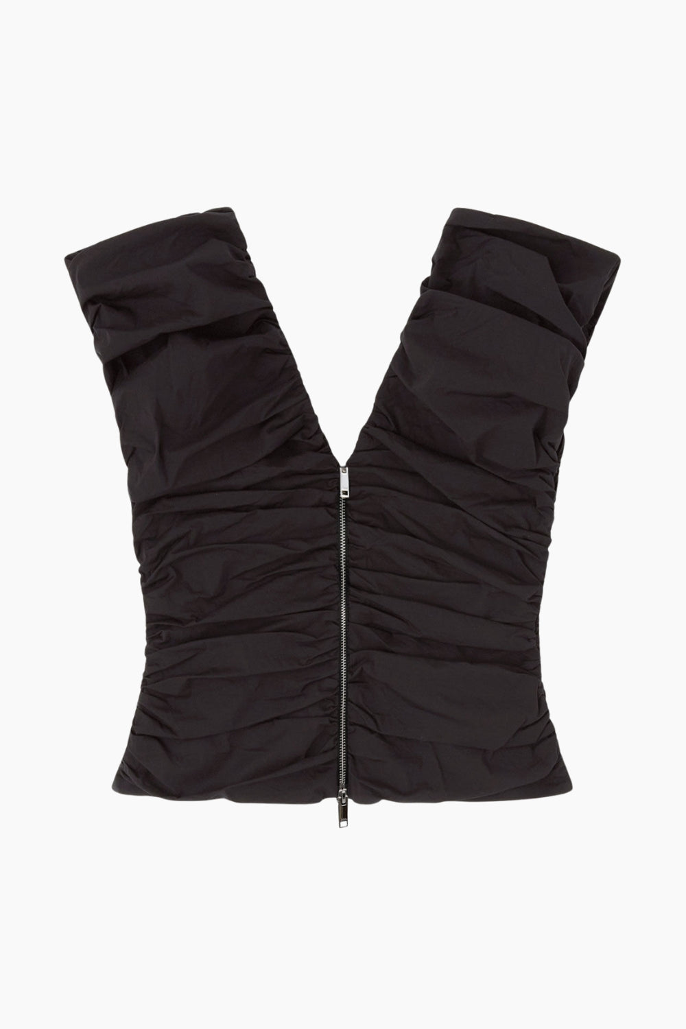 Stretch Cotton Ruched Top A1040071 – Black – GANNI – Sort XS