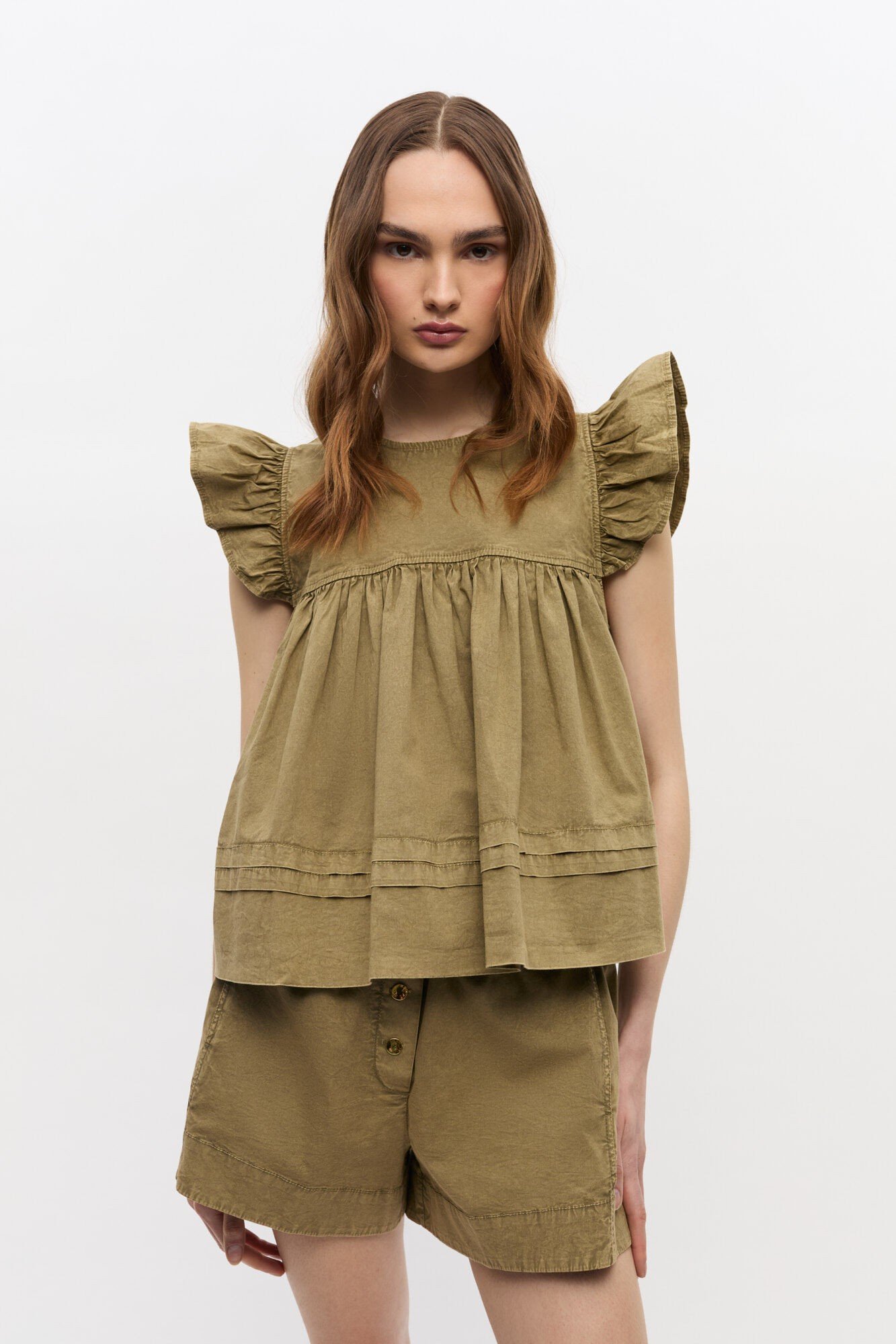 Washed Stretch Cotton Frill Sleeve