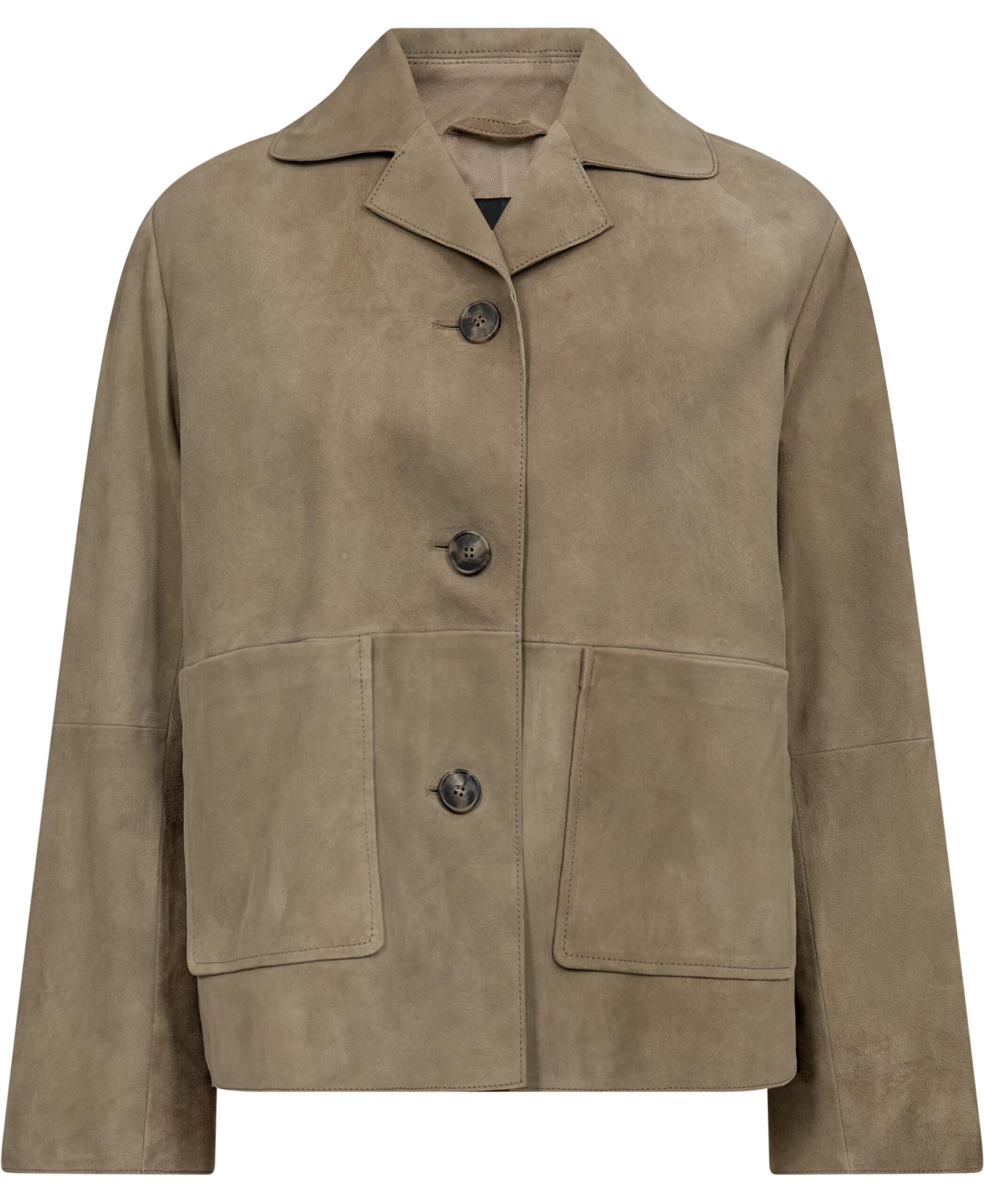 Med sin enkle modellæring og de praktiske frontlommer er jakken ikke bare smuk, men også funktionel. Den fine ruskindskvalitet giver en eksklusiv finish, der gør jakken til et statement-piece i ethvert outfit. Perfekt til dem, der sætter pris på minimalistisk design og høj kvalitet.